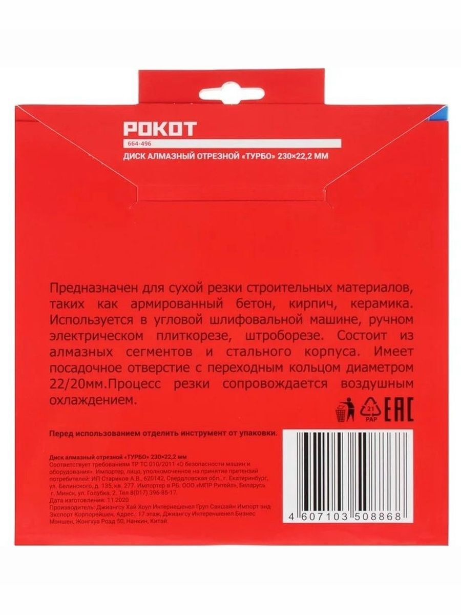 - Типичные области применения включают резку бетона, кирпича, бетонной брусчатки, кирпичной кладки/блоков, твердого/армированного бетона и известняка.