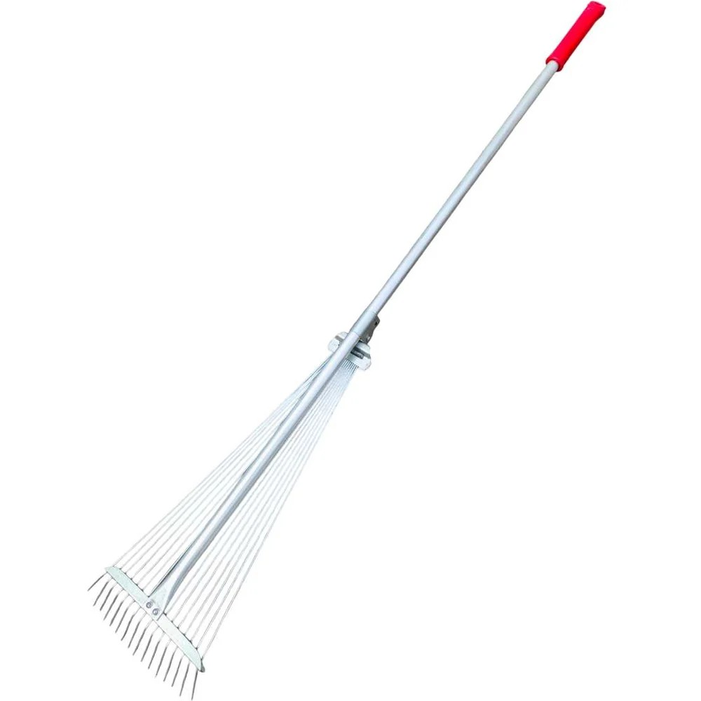 Раздвижные веерные грабли15-ти зубые, оцинкованные предназначены для сбора опавшей листвы, срезанных веток, сорняков, садового мусора. Круглые жесткие зубья позволяют использовать грабли для аэрации почвы.