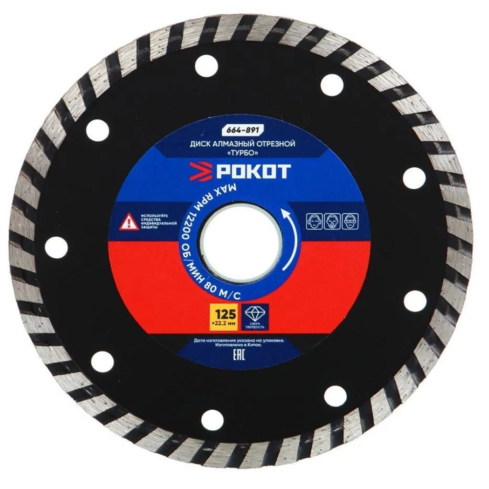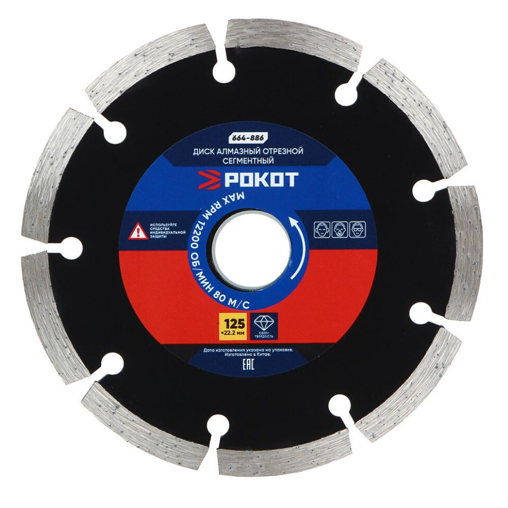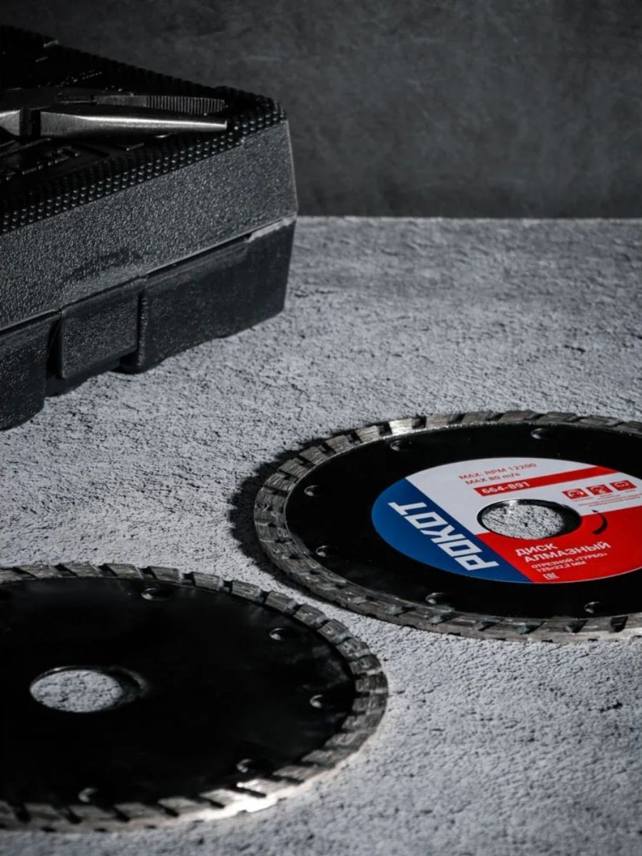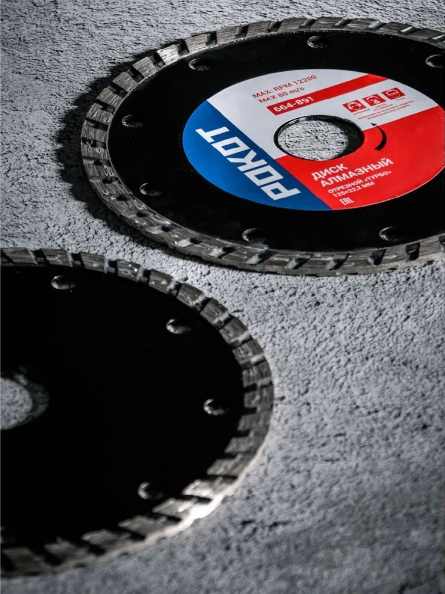 Диск алмазный сегментный 125×1,9×22,2 на ушм. Применяется для резки бетона, кирпича, шифера, камня, керамической плитки.