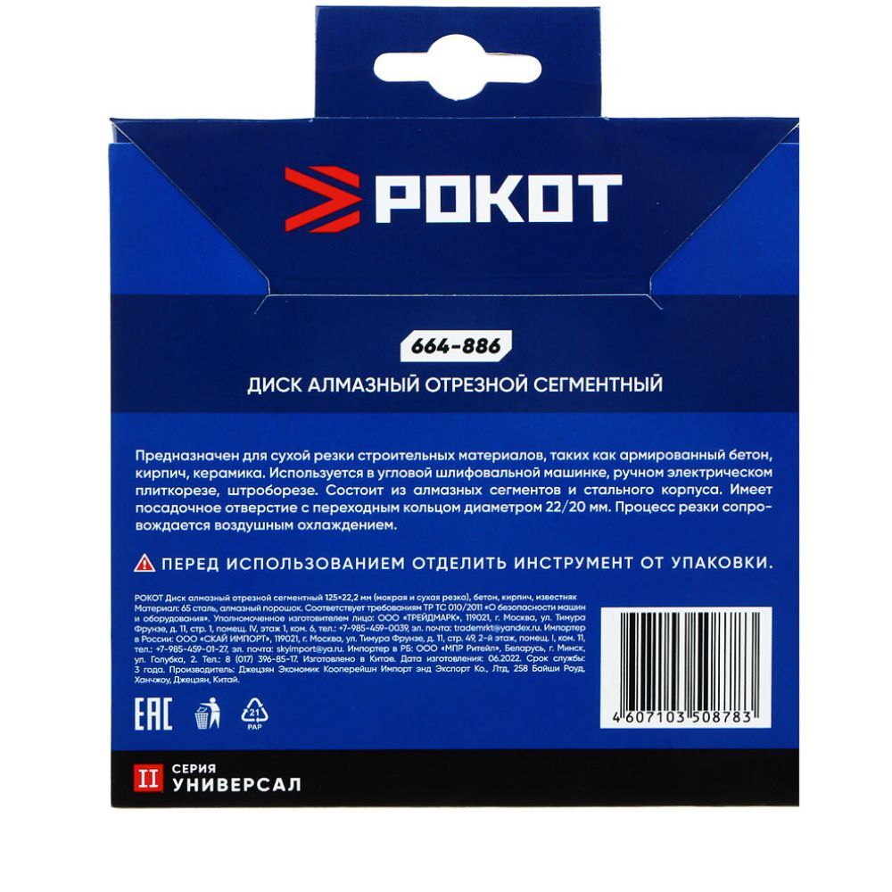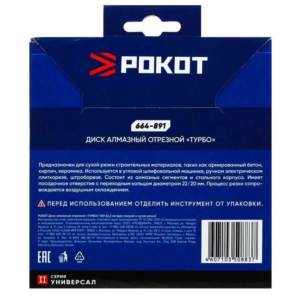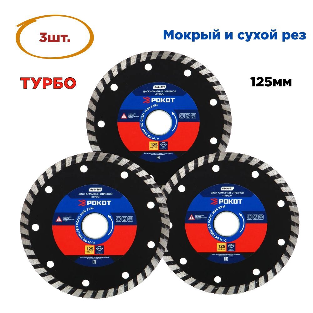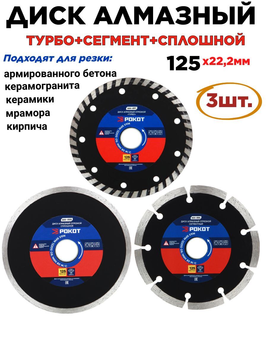 Диск алмазный сегментный 125×1,9×22,2 на ушм. Применяется для резки бетона, кирпича, шифера, камня, керамической плитки.