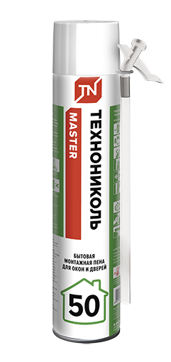 Пена монтажная ТЕХНОНИКОЛЬ MASTER 50 Бытовая представляет собой полиуретановую монтажную пену высокого качества на основе уникальной формулы, разработанной собственным научным центром. Монтажная пена ТЕХНОНИКОЛЬ обеспечивает отличную звуко- и теплоизоляцию и обладает хорошей адгезией к большинству строительных материалов: бетону, дереву, металлу, камню и т. п. Высокая заполняемость больших пустот.