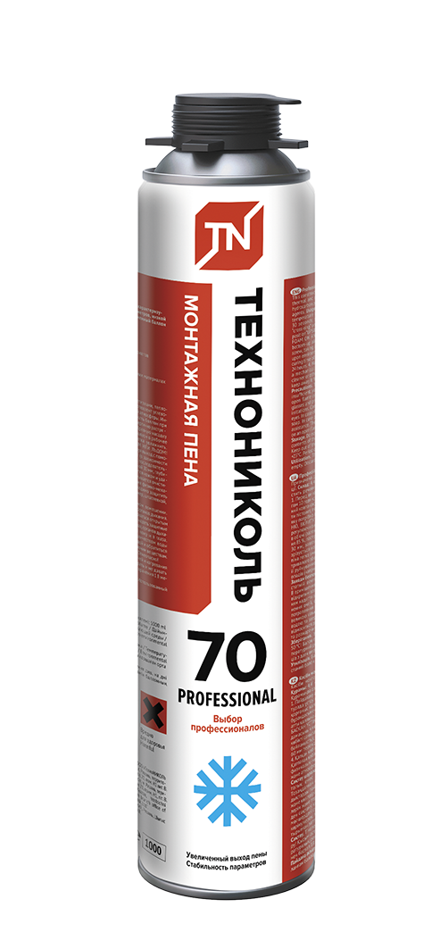 Пена монтажная профессиональная ТЕХНОНИКОЛЬ 70 PROFESSIONAL зимняя применяется при температуре от -18°С до +35°С. Температура баллона от +18 °С до +25 °С.